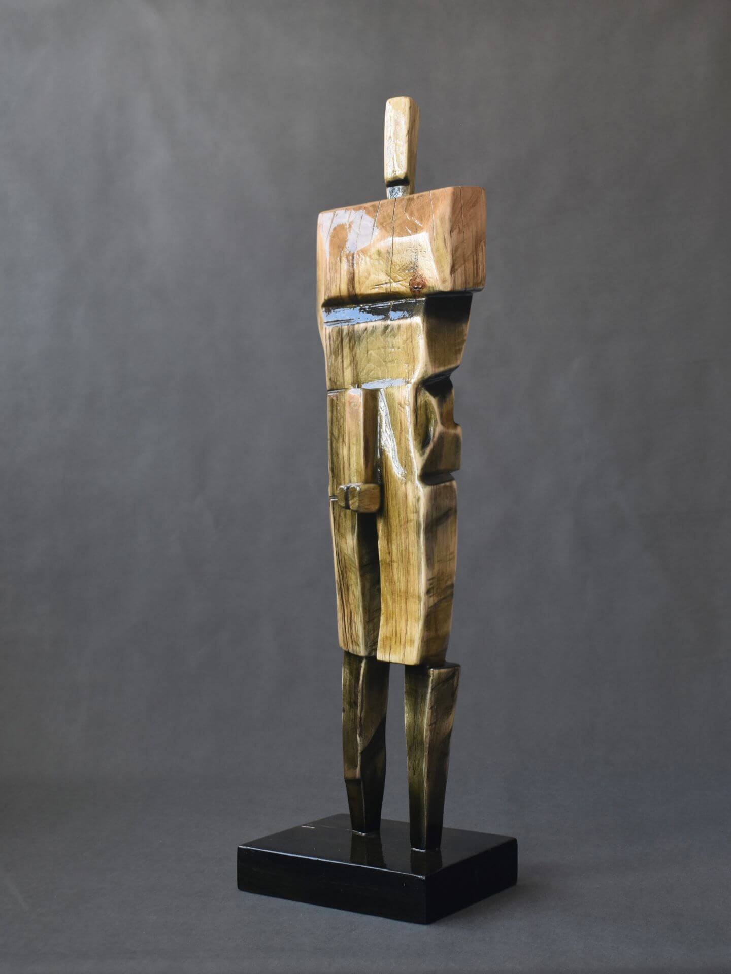 Poranek to statyczne wyobrażenie męskiej witalności — rytmiczna kompozycja z drewna, w której forma oddaje energię i siłę budzącego się życia. Czerpiąc z tradycji starożytnych kurosów, rzeźba łączy klasyczną postawę z nowoczesnym gestem – geometryczne akcenty harmonizują z organiczną strukturą drewna, tworząc dzieło pełne napięcia i harmonii.